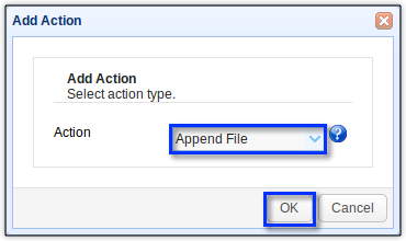 We would need the Append File for this purpose, so select that action and then click OK.