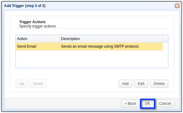 Click each succeeding OK button until you get back to the main screen. Upon reaching the main screen, click the Apply button to finalise the trigger creation process.