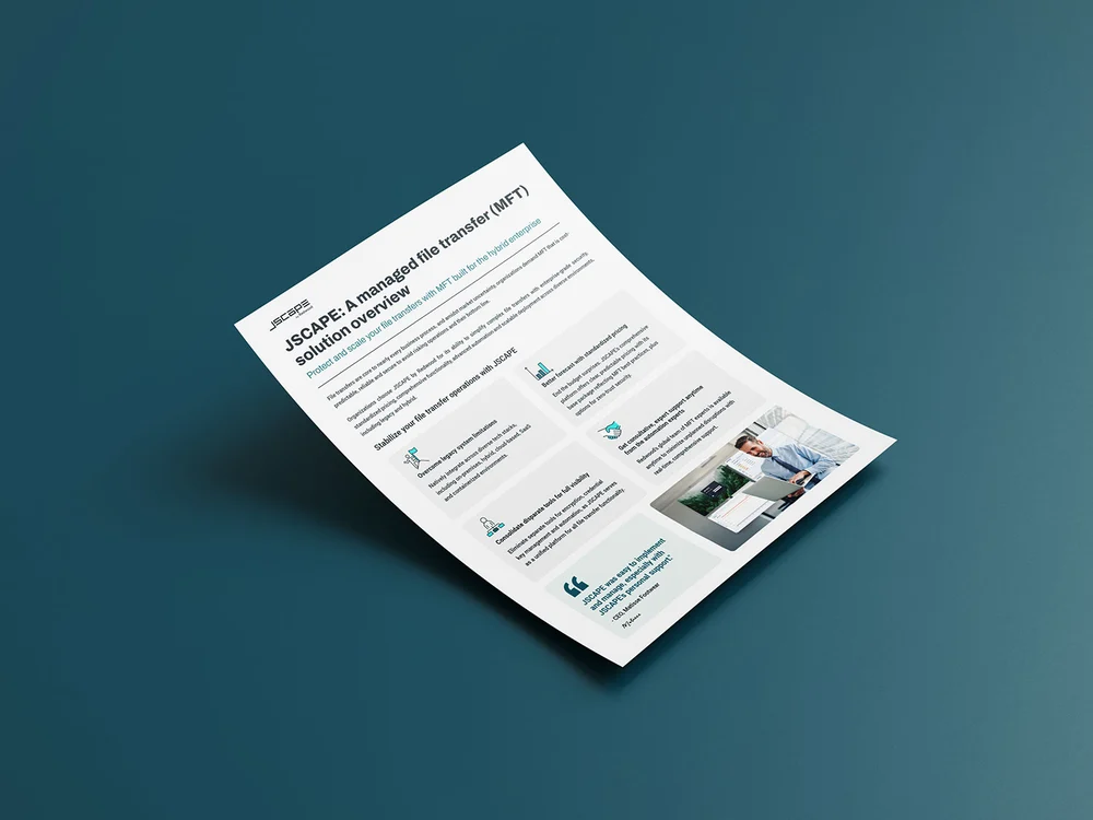 Learn more about how JSCAPE can make your file transfer operations more cost-predictable, reliable and more secure with our solution overview.